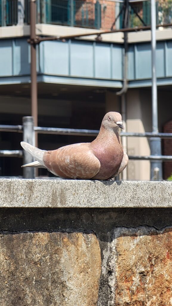本物の鳩たちが空を舞うのを、羨望の眼差しで見送る。