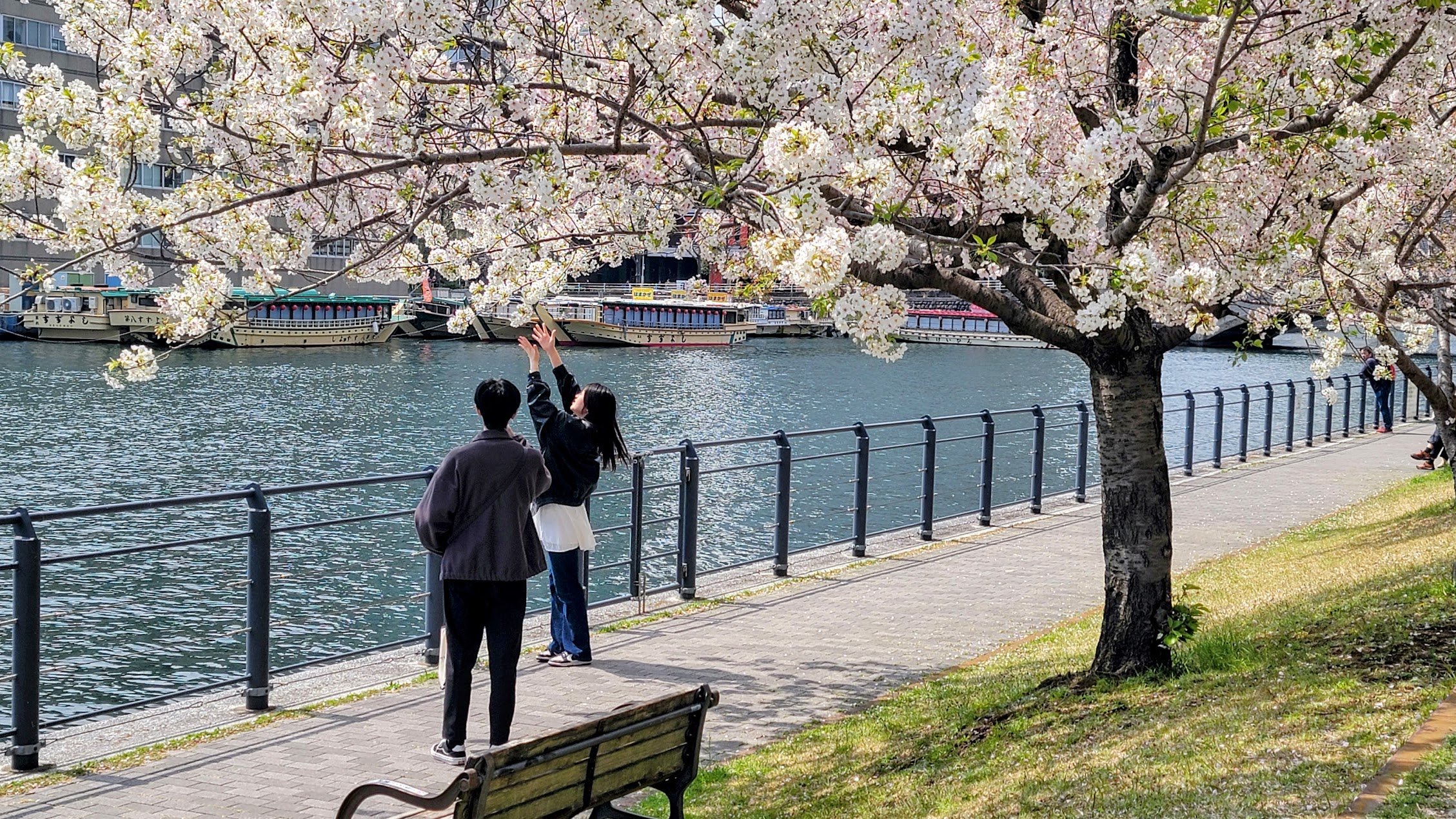 運河沿いの風が、桜の花びらをふわりと運ぶ午後。
